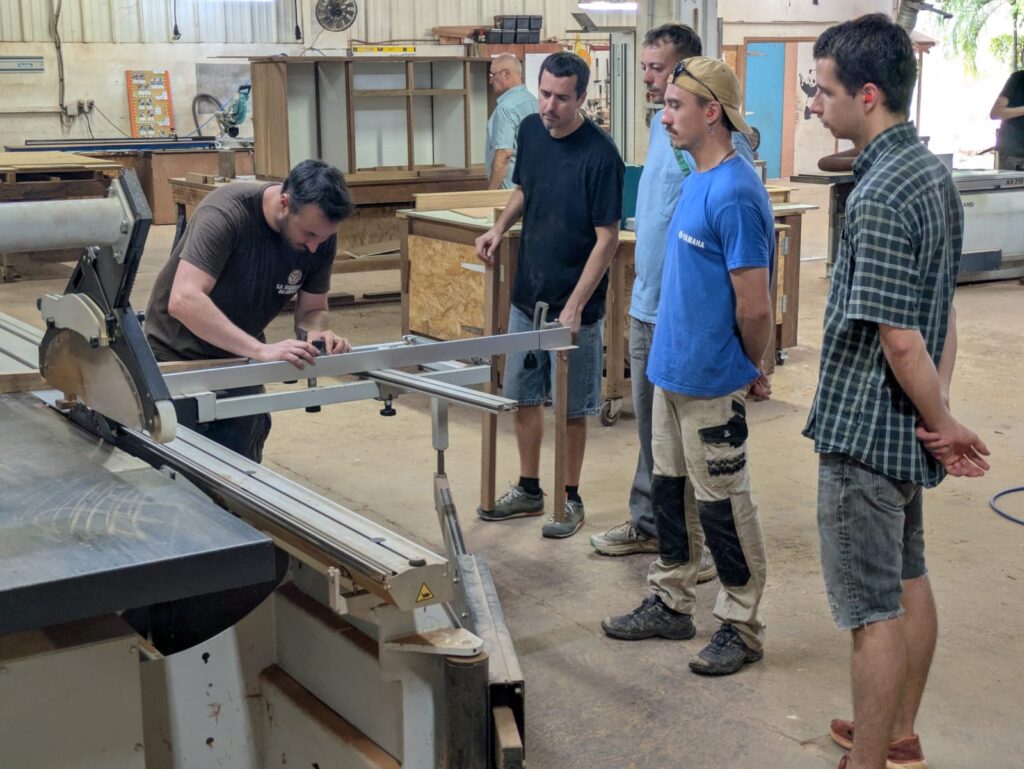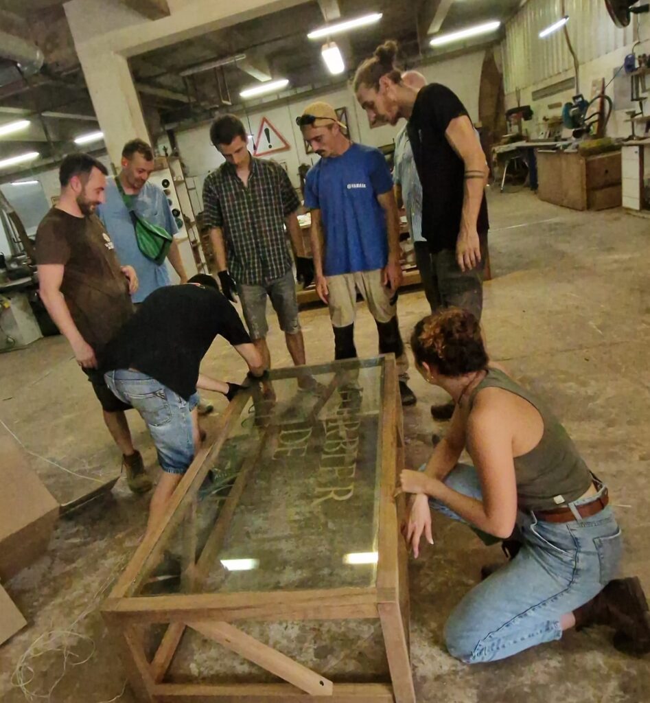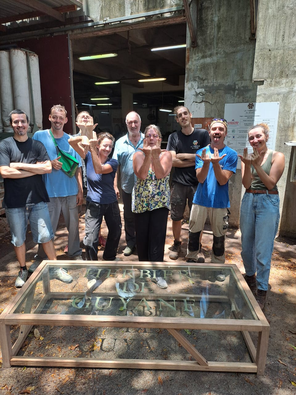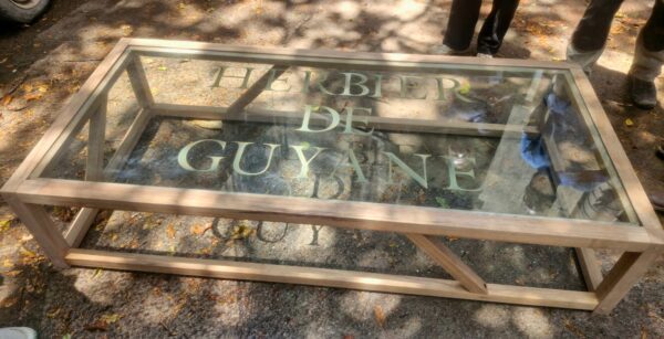 Le 19 septembre 2025, l’équipe de l’Herbier de Guyane a participé à une journée de cohésion pas comme les autres. Accueillis dans l’atelier de menuiserie de « La Fabrique du Dégrad »,nous avons découvert l’univers du travail du bois à travers une animation conviviale et créative. Pour cette occasion, nous avions choisi de réaliser un projet collectif et utile : fabriquer une table basse pour le hall d’accueil de l’Herbier. L’idée est née de notre volonté de donner une seconde vie à une vitre que nous avions soigneusement conservée lors du remplacement d’un vitrage. Plutôt que de la laisser inutilisée, nous avons imaginé un meuble qui associe récupération, créativité et esprit d’équipe.