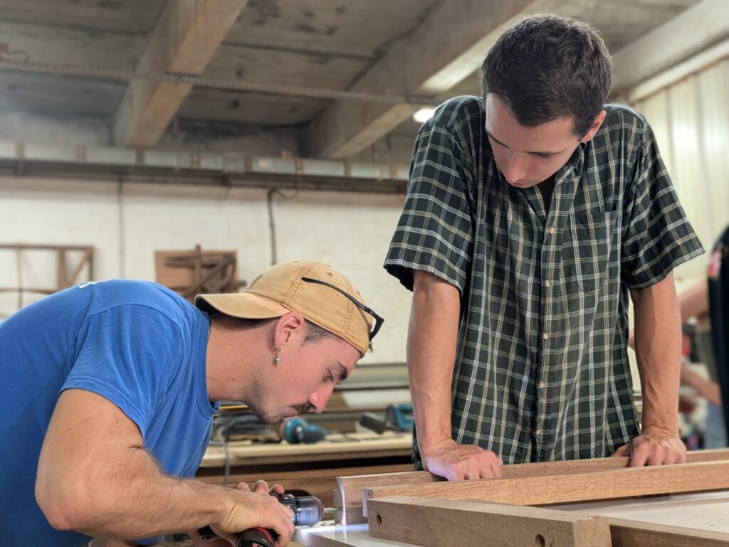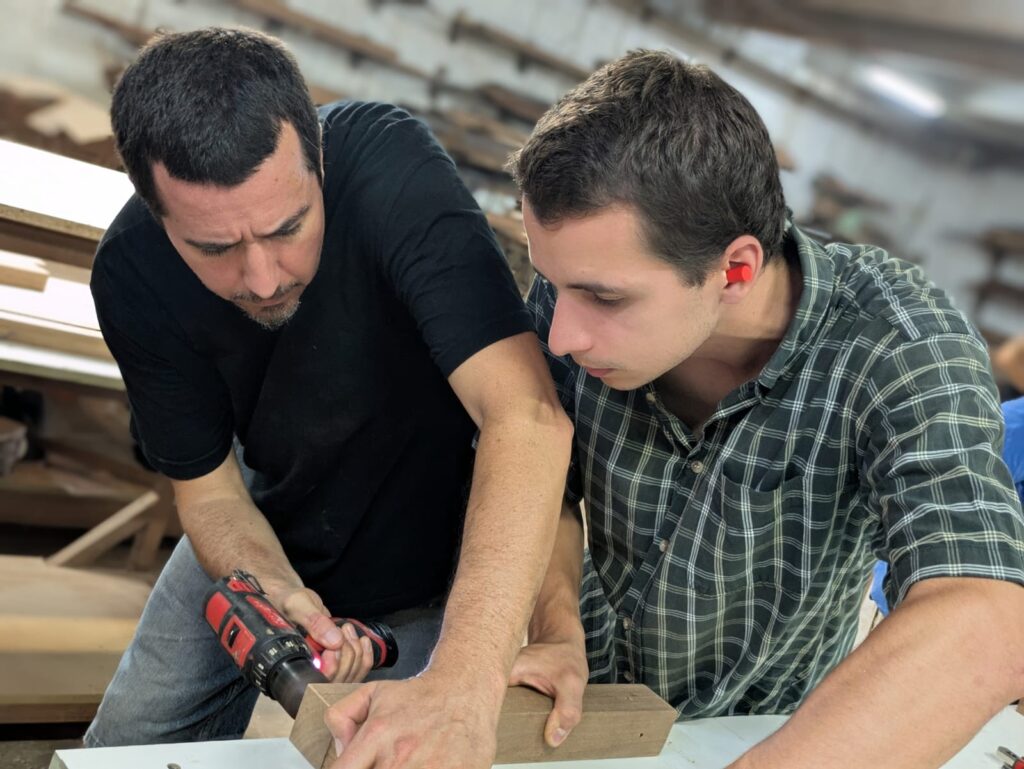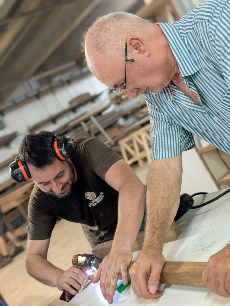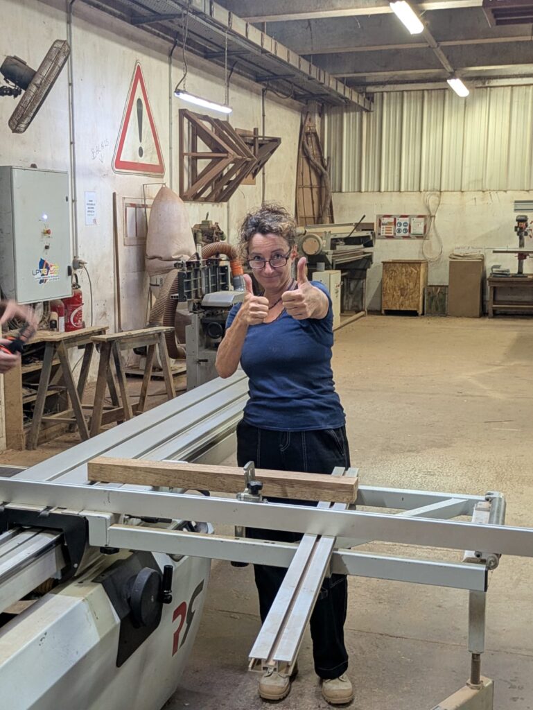 Au fil de la journée, chacun a pu participer aux différentes étapes : découpe, ponçage, assemblage, finition… Un vrai travail collaboratif où chaque geste comptait. Un grand merci à Victor et Charly, nos anges gardiens du bois : grâce à eux, aucun doigt coincé, aucun meuble tordu… et beaucoup de rires !!! sans leur vigilance, certains auraient peut-être inventé la première table basse… à trois pieds ou une table cubiste façon Picasso …