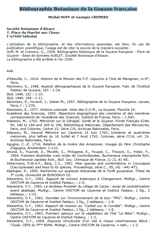 Vous êtes ici : Accueil > Recherche scientifique > Archives botaniques : anciennes publications sur la flore de Guyane. > bibliographie_botanique_guyane